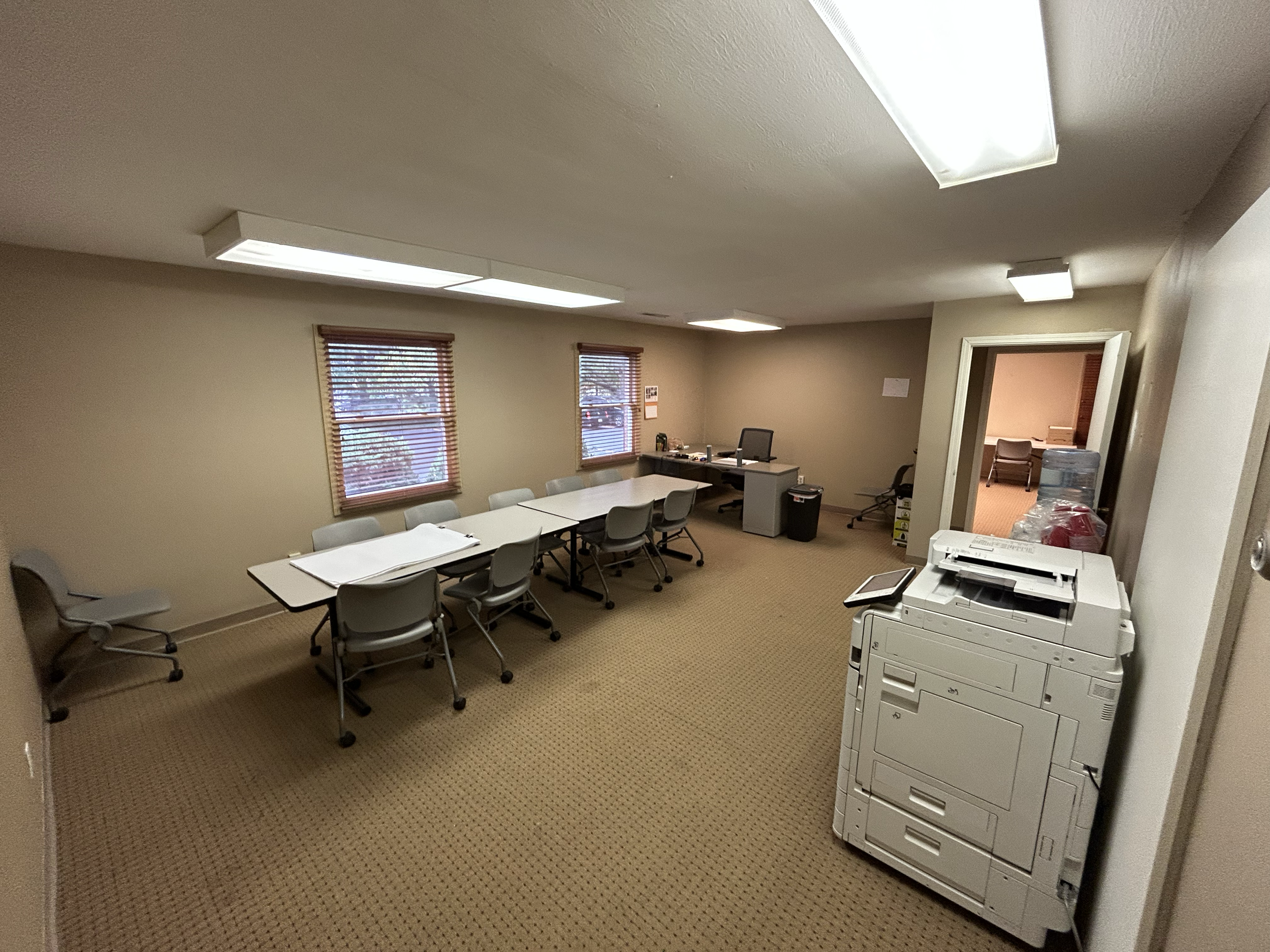 Layout: 1 large common area, 2 private offices, 1 private bathroom